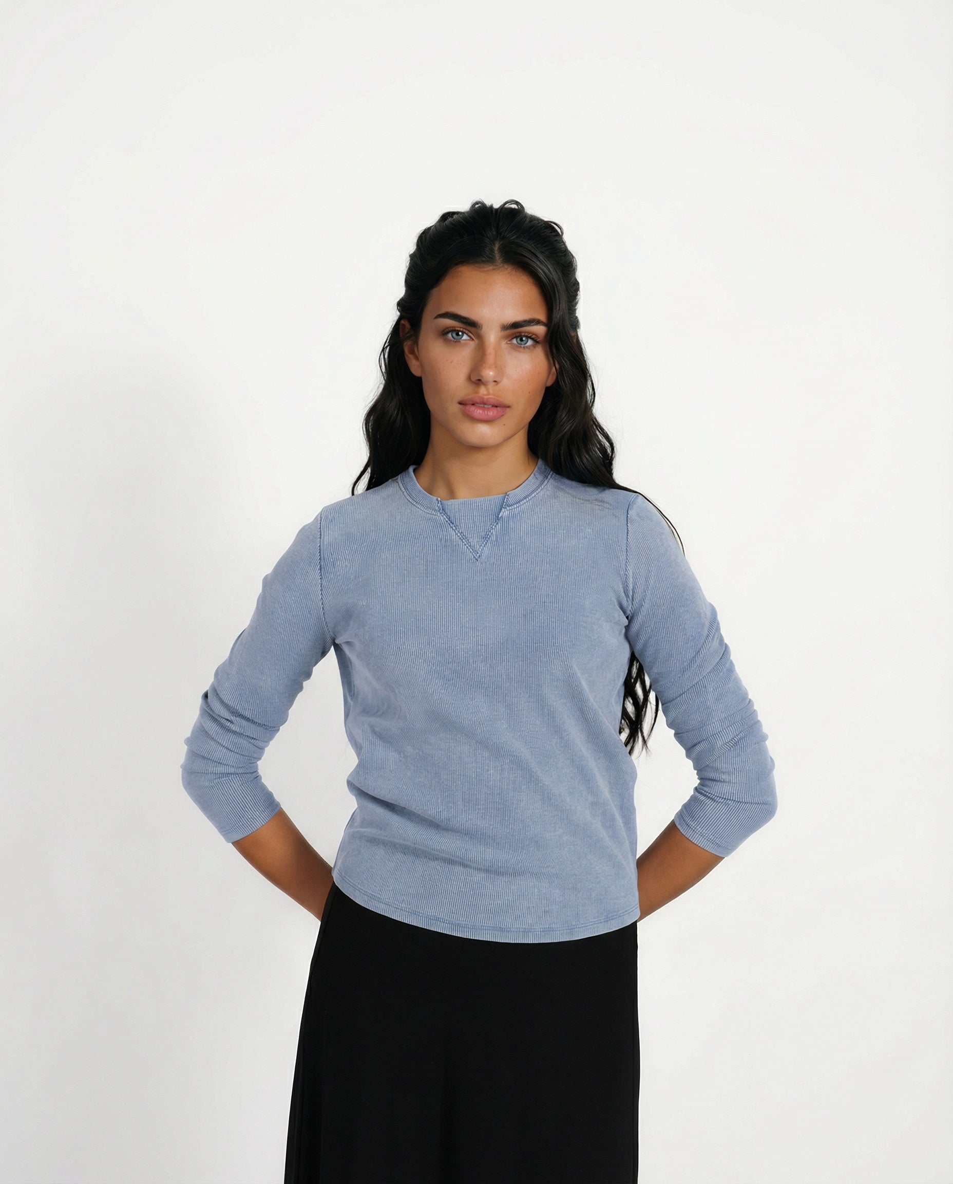 Denim Wash Ribbed Top
