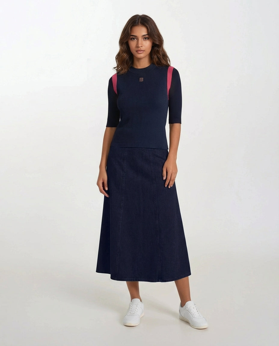 Sleeveless Ribbed Vest With Logo Navy