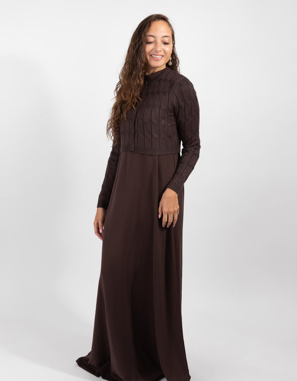 Brown Cable Knit Cardigan