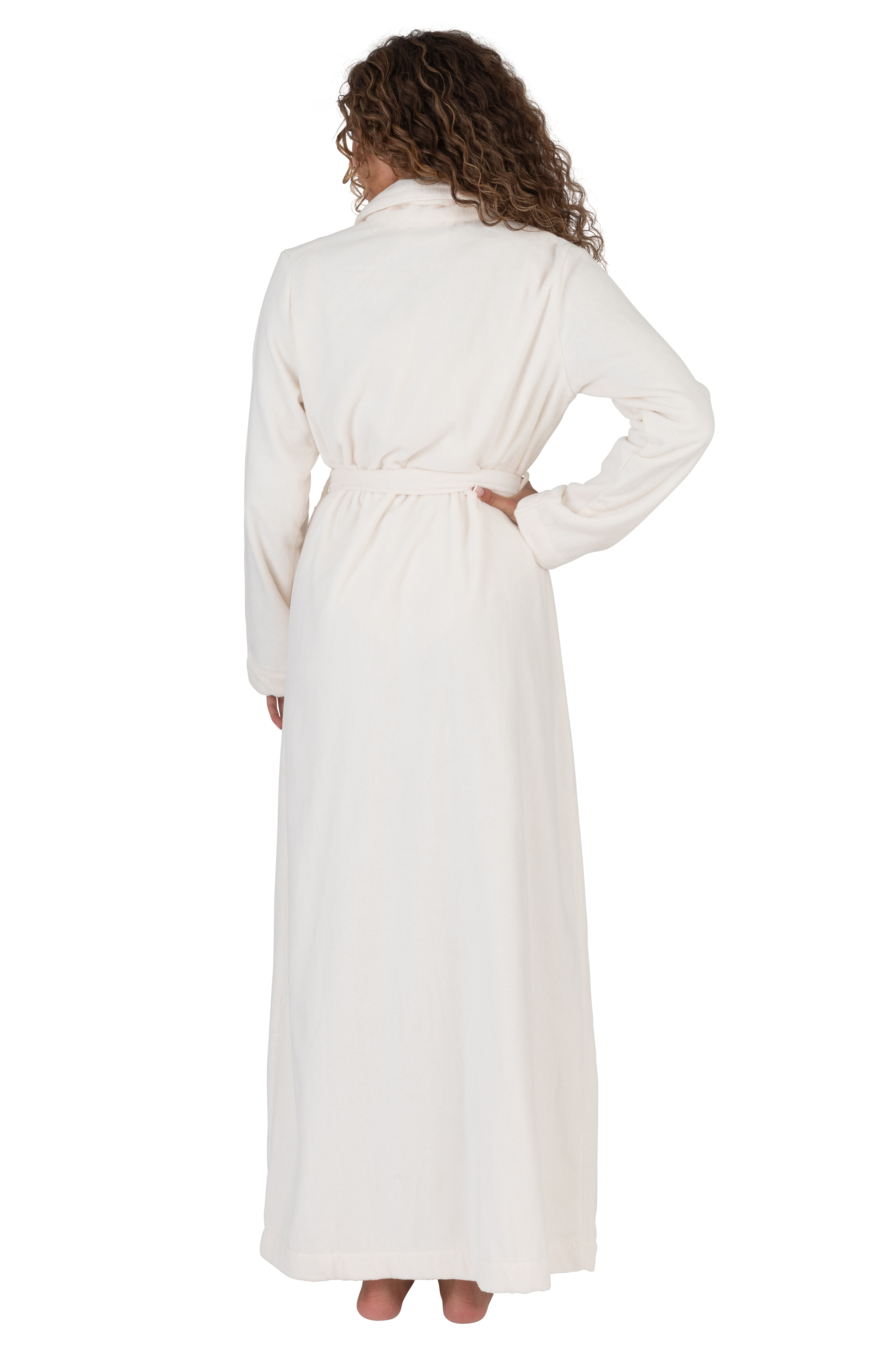 Terry Wrap Long Belted Bathrobe Ivory
