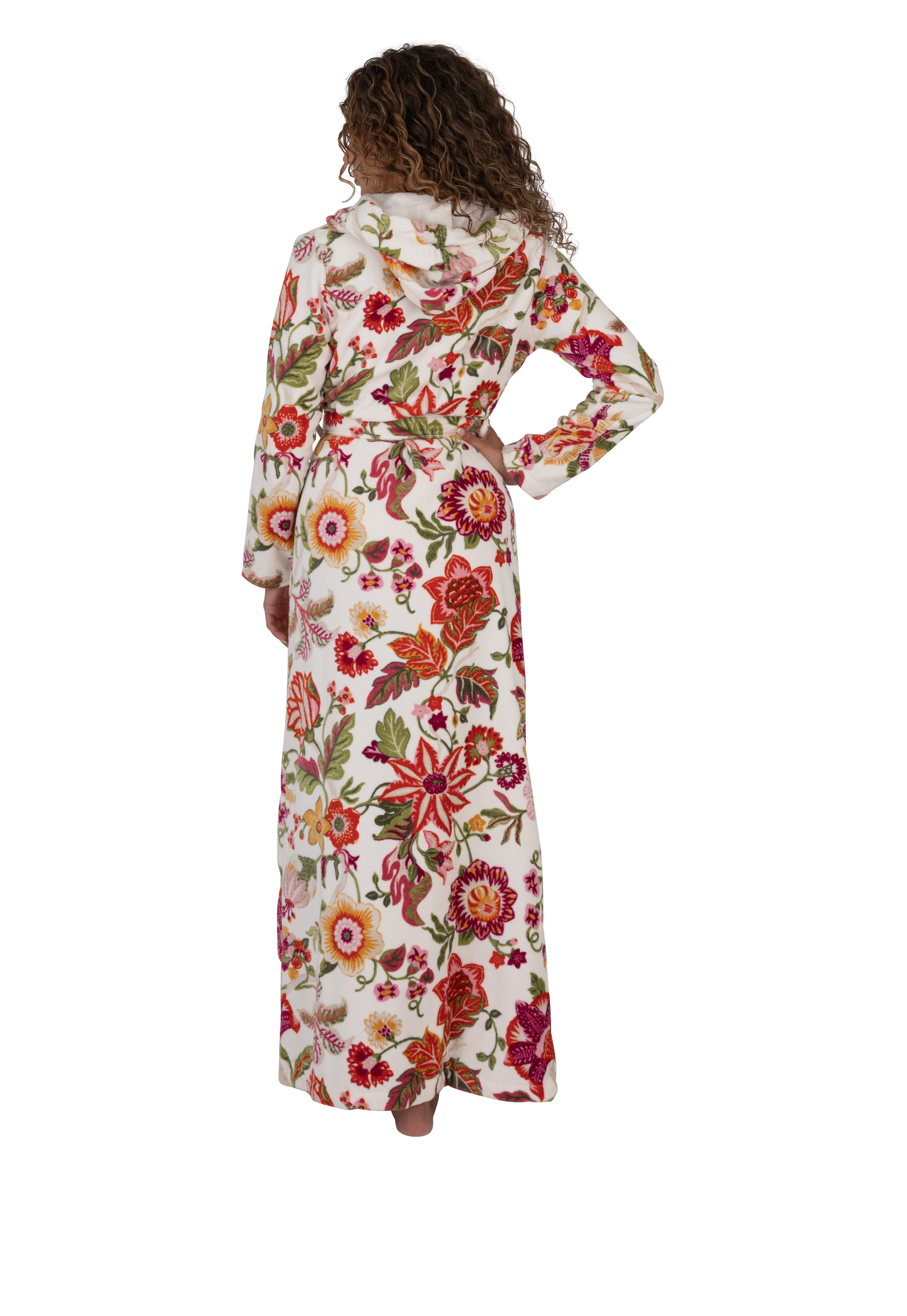Terry Wrap Long Belted Bathrobe With Hood Floral