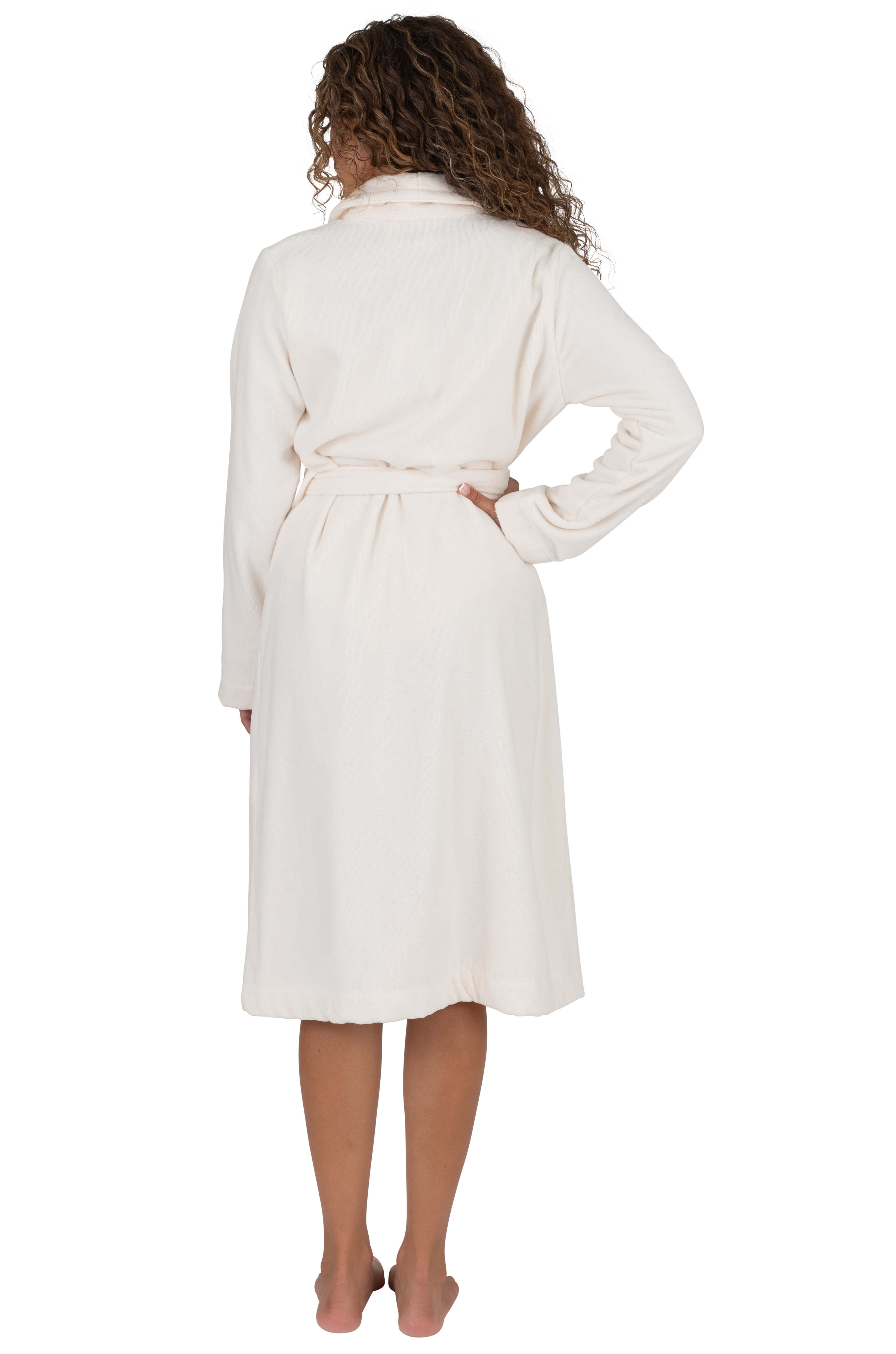 Terry Wrap Short Belted Bathrobe Ivory