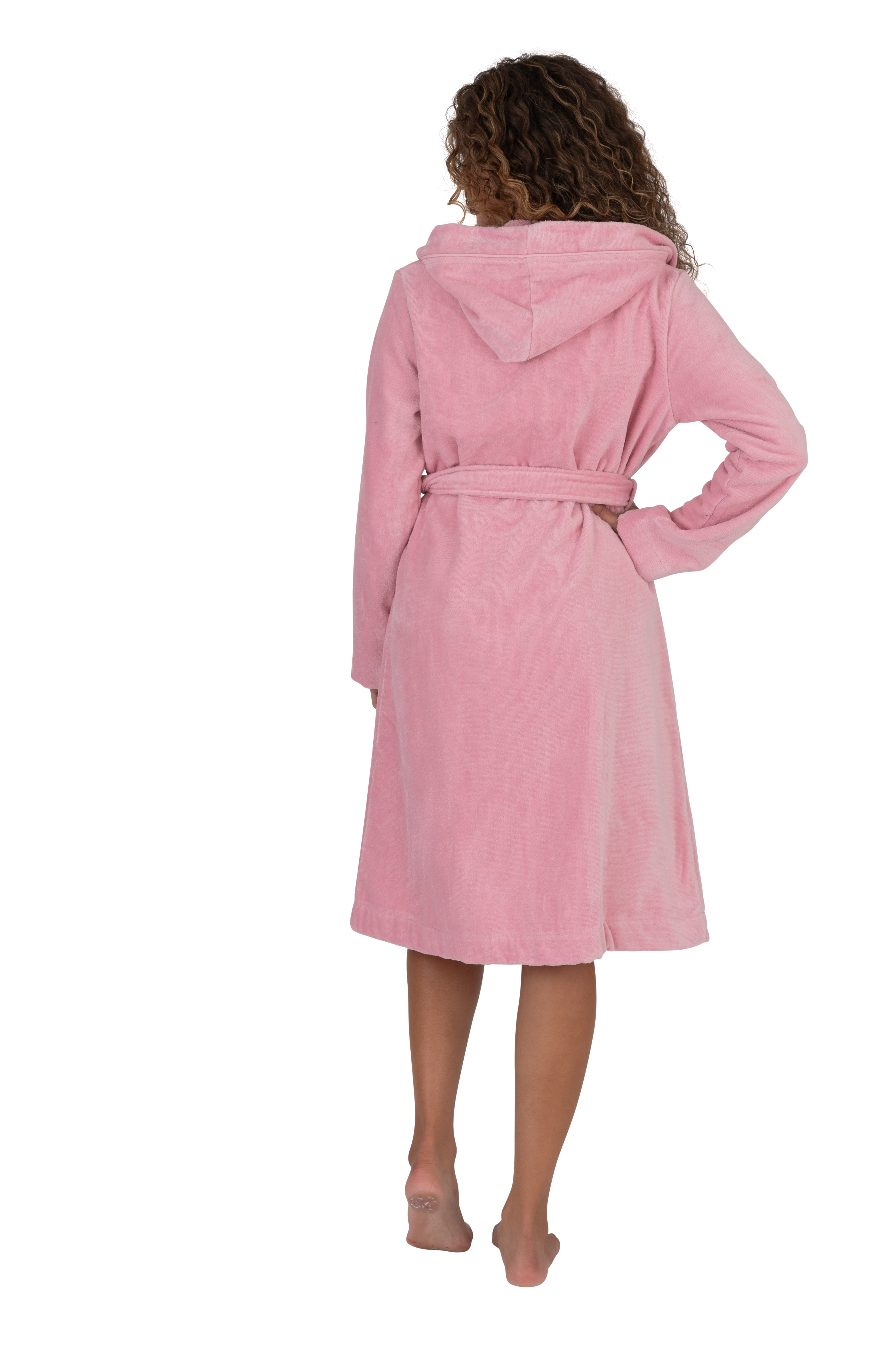 Terry Wrap Short Belted Hoodie Bathrobe with Piped Trim Pink