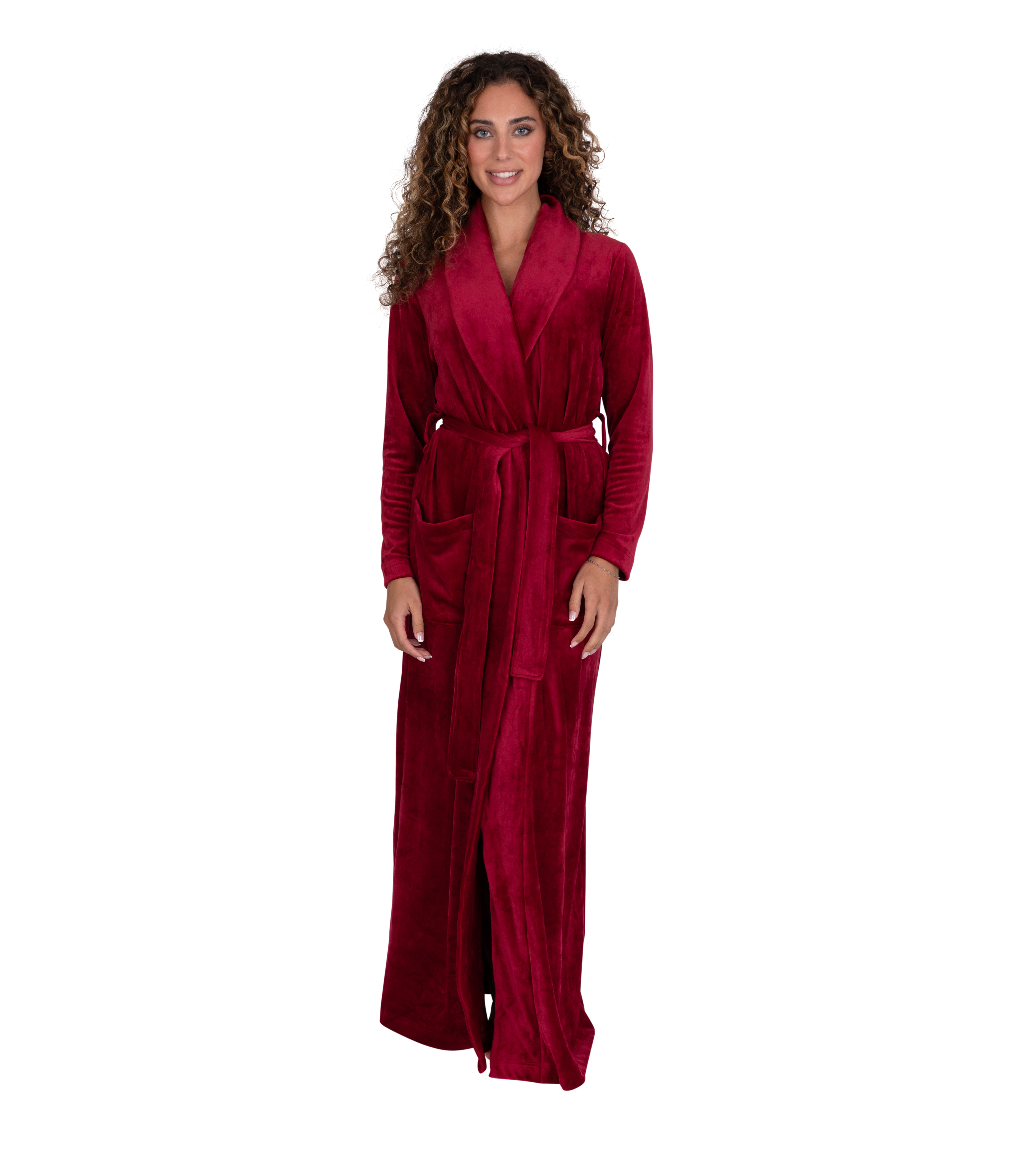 Ultra Soft Plush Velour Belted Shawl Collar Wrap Robe Cranberry